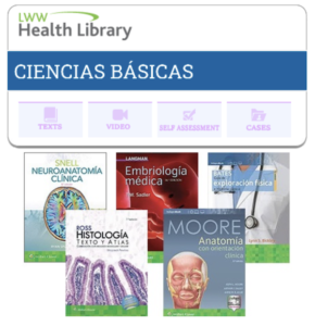 LWW Health Library CIENCIAS BÁSICAS es una plataforma digital en español de educación en ciencias de la salud para estudiantes de medicina y de otras áreas dedicadas a la atención a la salud, y diseñada para la enseñanza y aprendizaje de los fundamentos biomédicos y el desarrollo de habilidades de pensamiento crítico.